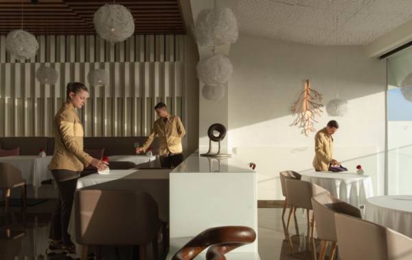 Como entrante, se servirá un carpaccio de gamba roja del Mediterráneo finalizado con caviar Ocetra. Le seguirá un primer plato protagonizado por un canelón de bogavante del Cantábrico acompañado de un suquet de marisco y, como plato principal, un rape en salsa verde con almejas. Para culminar la noche, la propuesta dulce será una milhoja rellena de crema de turrón, un final festivo y cremoso que completa el menú.